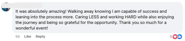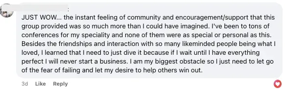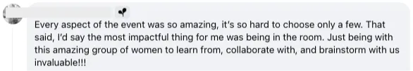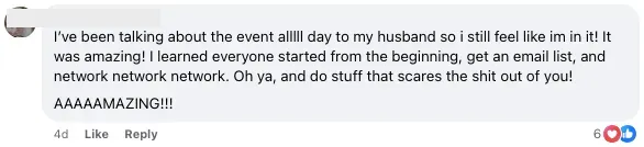 You'll be surrounded by other likeminded entrepreneurs and the energy and momentum in our space is just a game-changer.