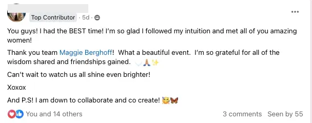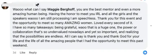 Meet your Mentorship friends, mingle with Maggie, collaborate with others, immerse yourself in an abundant and transformational environment where you are encouraged to DREAM BIGGER and given the shifts and strategies needed to help you on your journey of growth!
