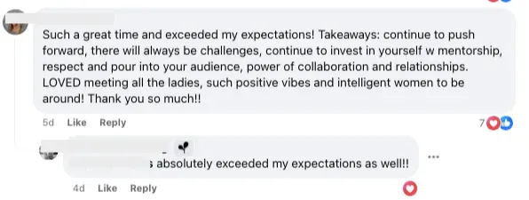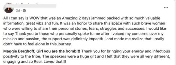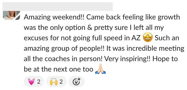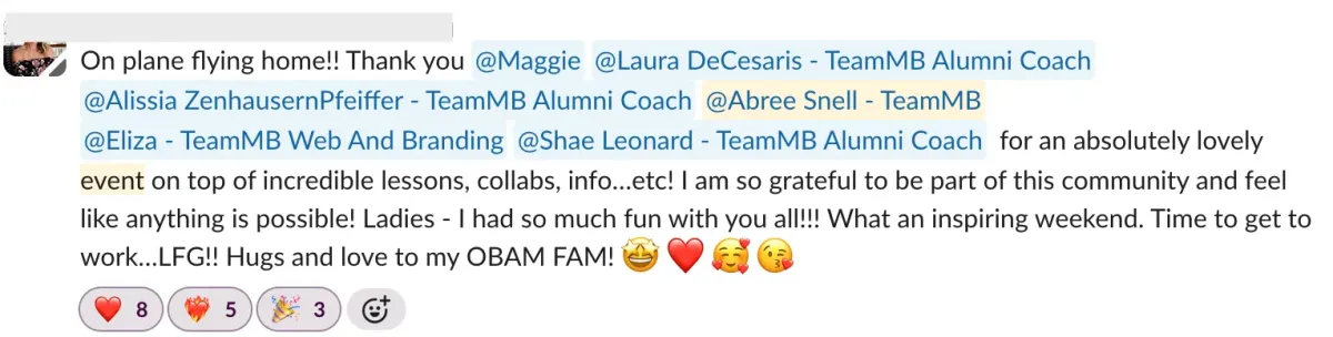 Here’s what our clients are saying about the powerful connections and experiences inside our in-person OBAM retreats. These events are exclusive to our Mentorship clients. No tickets are sold to the general public, and no non-clients are invited.